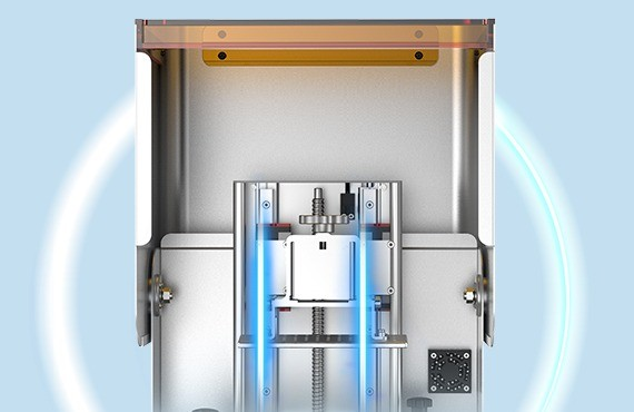 Its robust construction and Z-axis motion system with dual linear guides and a ball screw ensure stability and precision during printing.